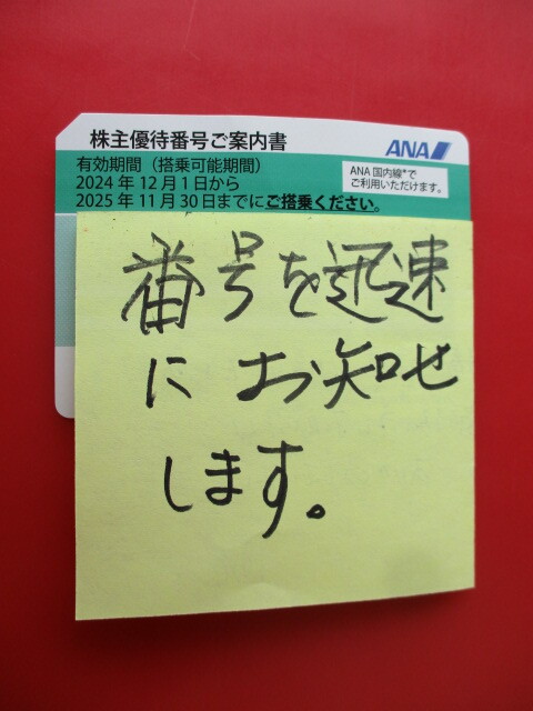 - ●迅速連絡・即決・1枚~9枚 ☆ ANA株主優待券 ☆