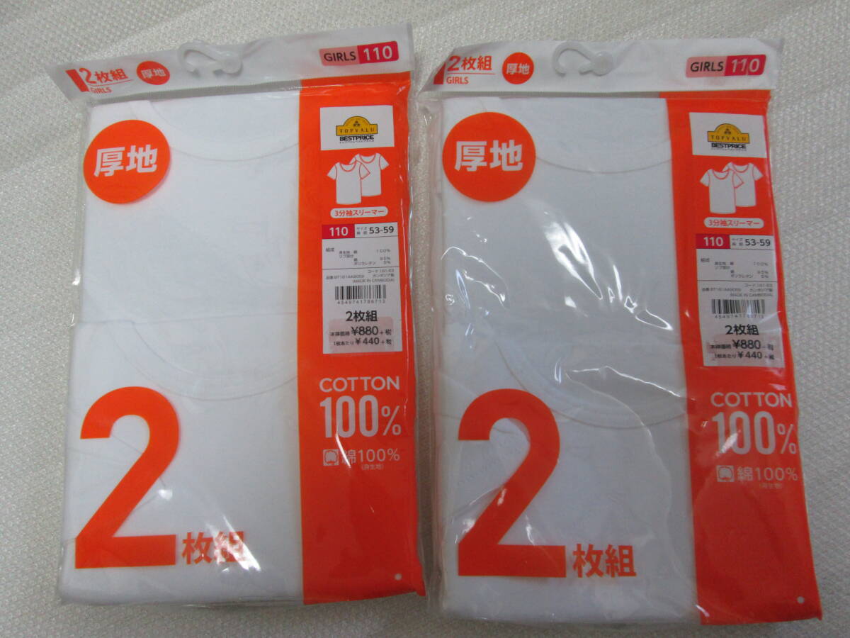 > ガールズ 厚地3分袖スリーマー サイズ110 2枚組×2 新品未使用品