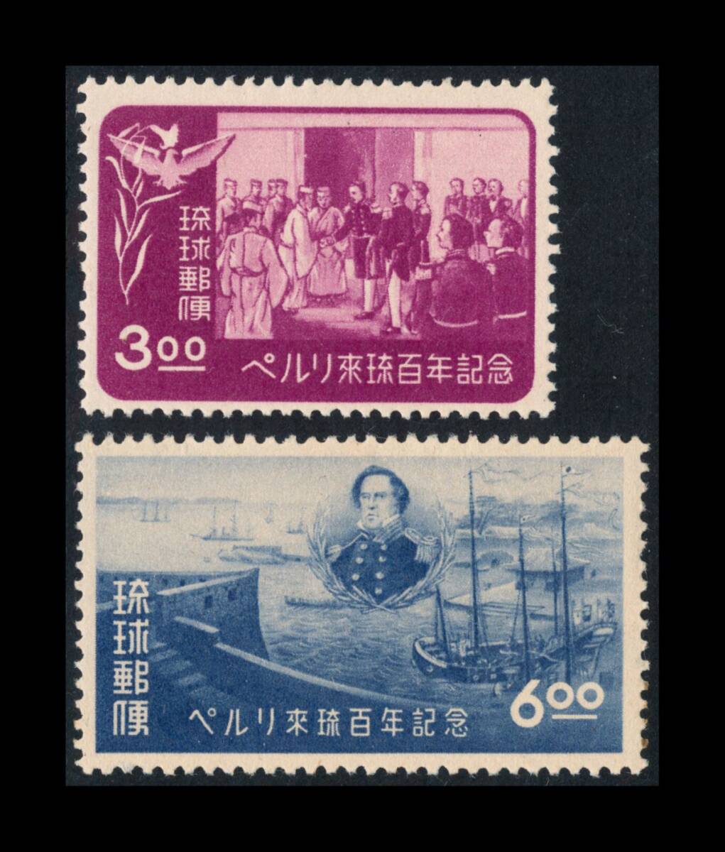 - Z83 琉球/未使用|ペルリ来琉百年3BY+6By2種2枚 表面:共美品 裏面:糊ツヤ有るも小ヒンジ跡