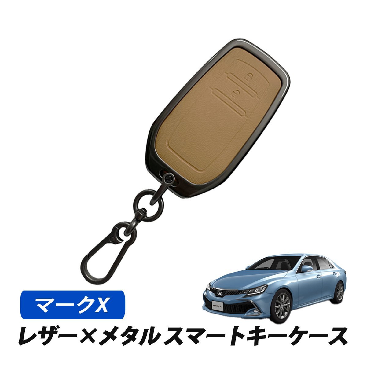 - マークX スマートキーケース キーカバー レザー メタル トヨタ 2ボタン 専用設計 キーケース キャメル