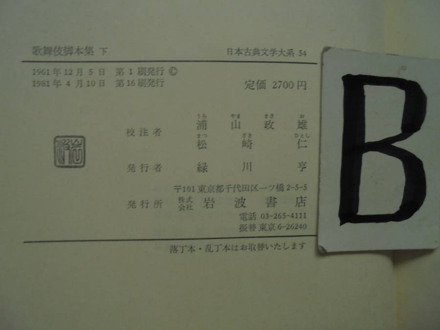 > 歌舞伎脚本集 上下2巻 岩波書店発行 幼雅子仇討 傾城壬生大念 お染久松色読販他 レトロ 良品 8322 茶道具等 京都雲屋