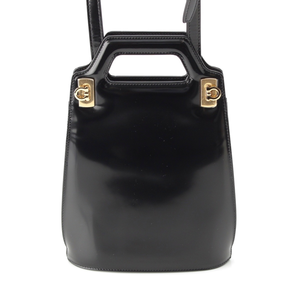 - サルヴァトーレフェラガモ ワンダ レザー ガンチーニ トップハンドル 2WAY ハンドバッグ ブラック【中古】