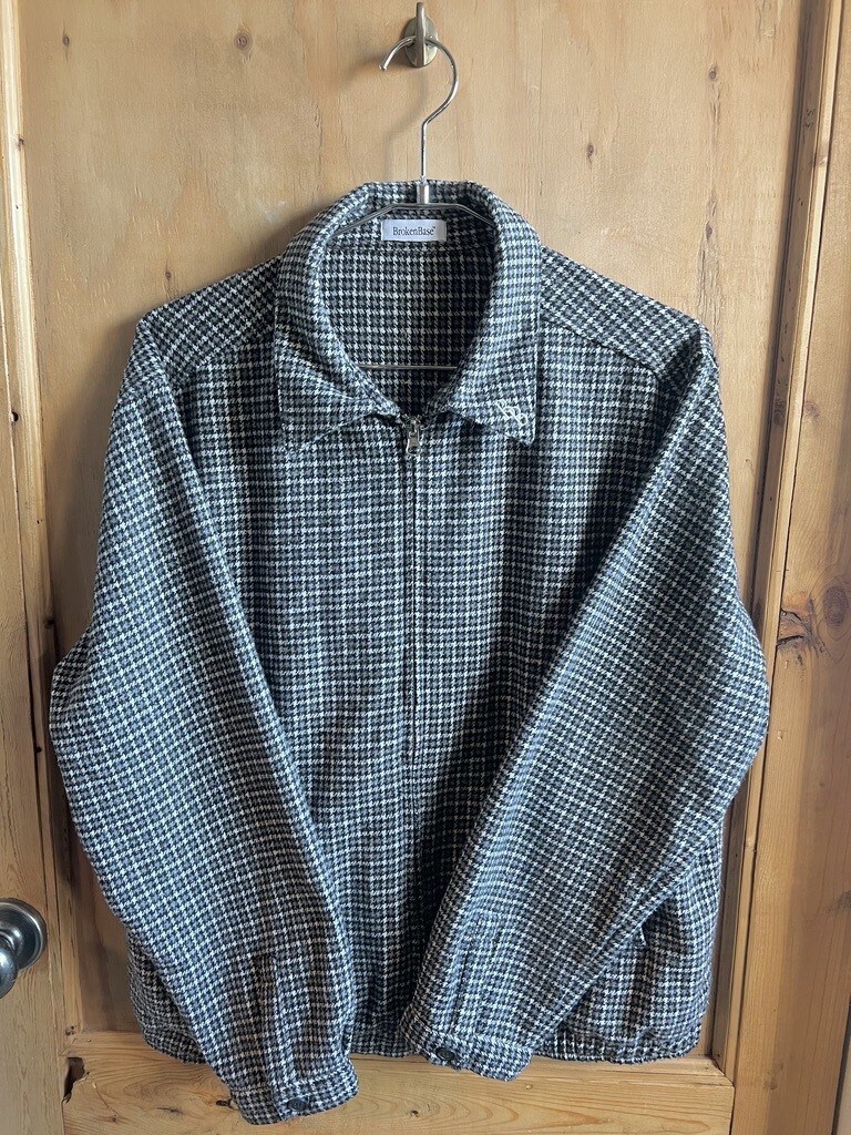 > BROKEN BASE/ブロークンベース フェイクウールスウィングトップ ジップアップブルゾン グレー チェック Lサイズ メンズ