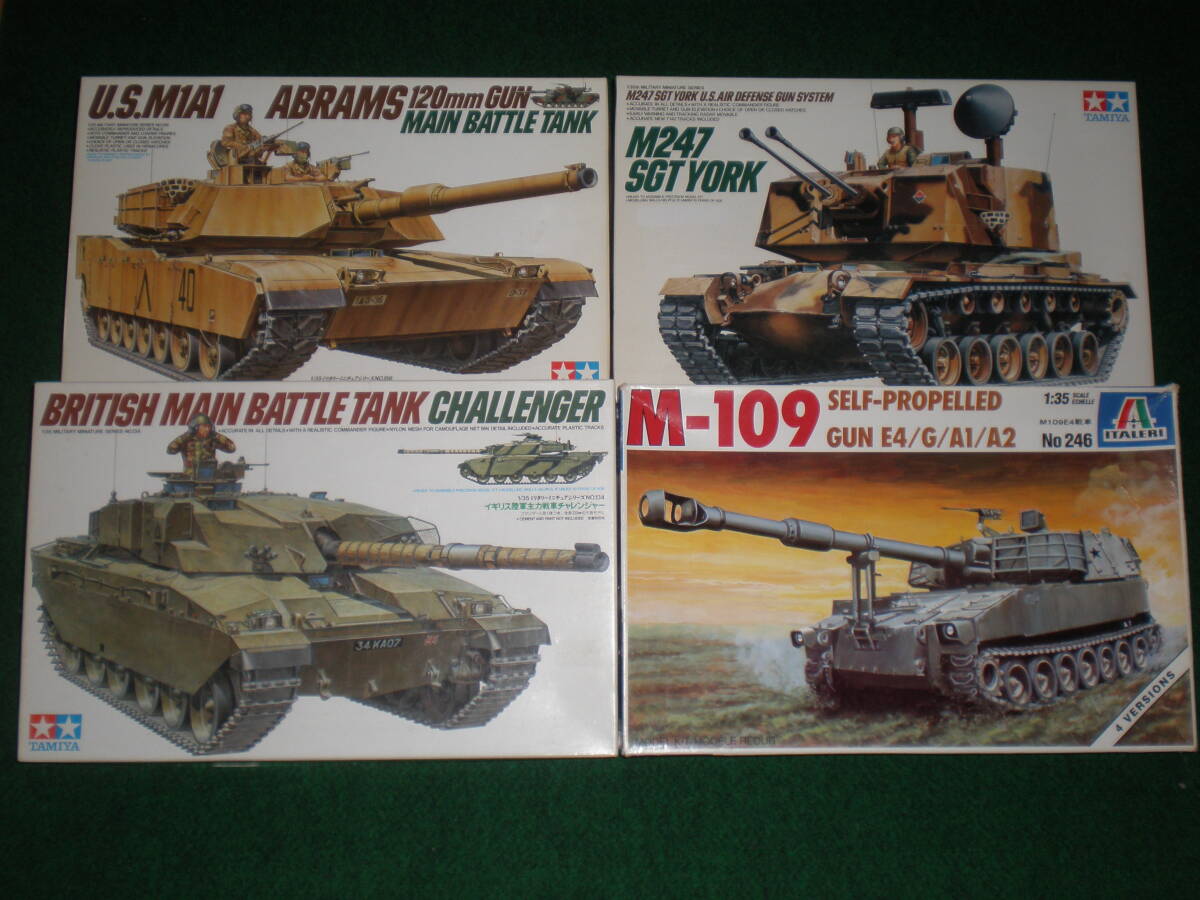 - エイブラムス・チャレンジャー・M109E・対空戦車ヨーク=戦車4両 1/35<タミヤ模型・イタレイ社>