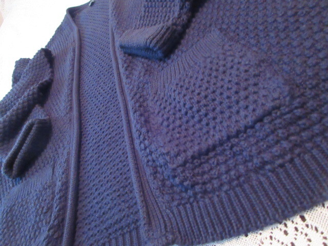 - F‘)■ブランド品■【TOPSHOP トップショップ】■手洗い可/綿51%アクリル49%■紺系/表&裏編みポコポコ編み!オープンカーディガン