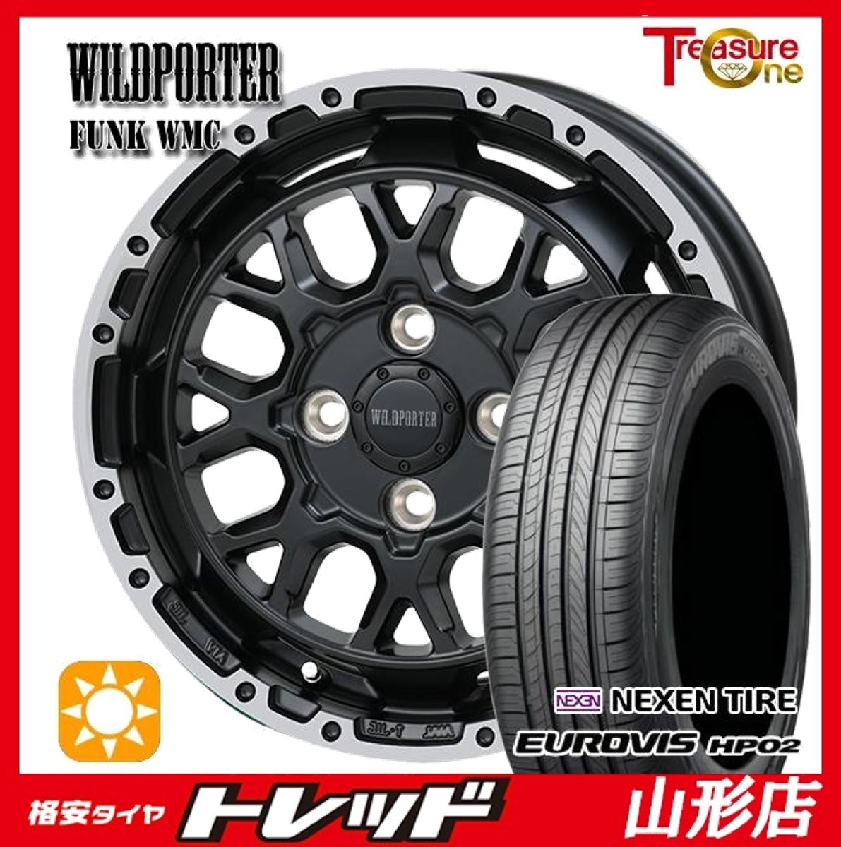 > ★山形店★新品 夏タイヤホイール4本セット WILDPOTER Funk WMC 14インチ 4.5J 4H100 +45 ロードストーンHP02 155/65R14 2025年製 軽自動車