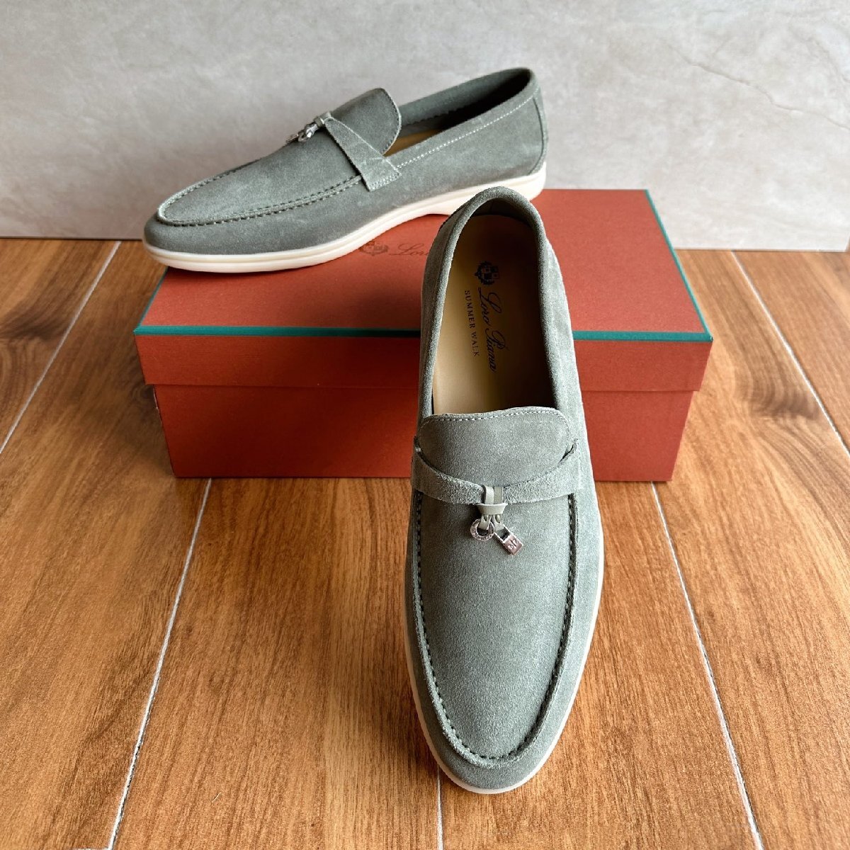 > グレーグリーン25.5cm★送料無料★ロロピアーナ Loro Piana メンズ スエード ローファー, グレー, 牛革ソール, 金属装飾付き