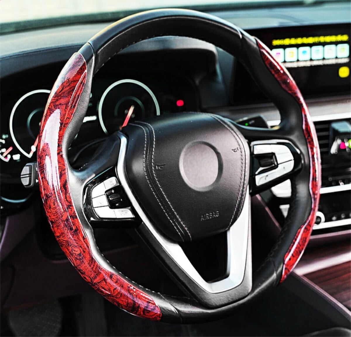 - ハンドルカバー 木目調 全グレード対応 アクセサリー 車用ステアリング カバー ABS製 オールシーズン対応仕様 ウッド調素材