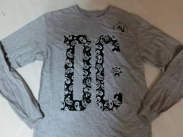 - アメカジ【DC SHOES】ペイズリー柄ロゴプリント ロングT US L 灰