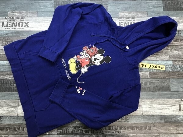 > DISNEY ディズニー レディース ミッキー花束プリント 裏起毛 フーディー パーカー L 青