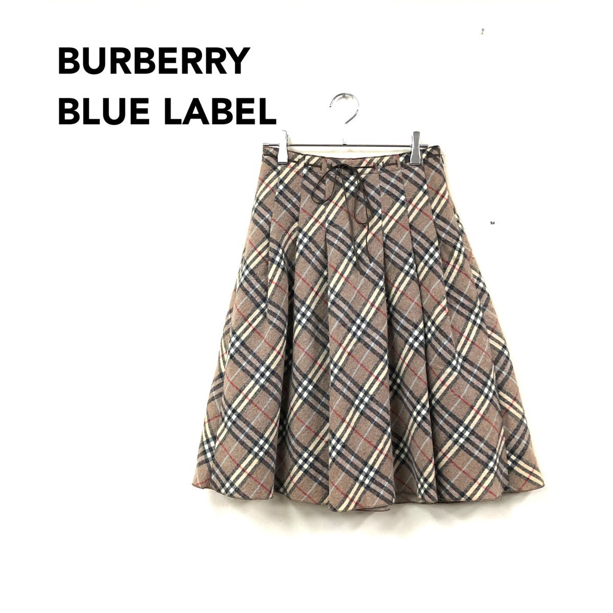 > 2N1008-Y-N◆BURBERRY BLUE LABEL バーバリーブルーレーベル プリーツスカート 膝下 チェック 裏地あり レディース◆size36 ブラウン 綿 毛