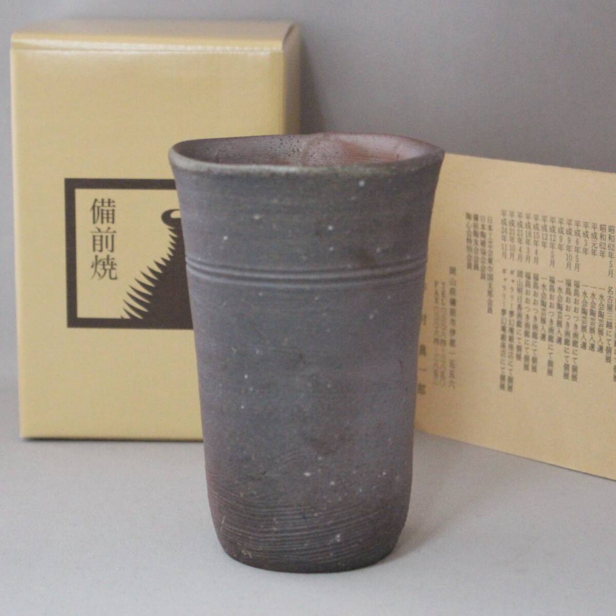 - 難あり 備前焼 ビアマグ ビールカップ ビア 真一郎 作 陶印無 新品