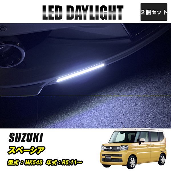- スペーシアMK54S LED デイライト 極細 埋め込み 改良版 フロントグリル バンパー 防水 30灯 ホワイト 2P 汎用 昼間点灯