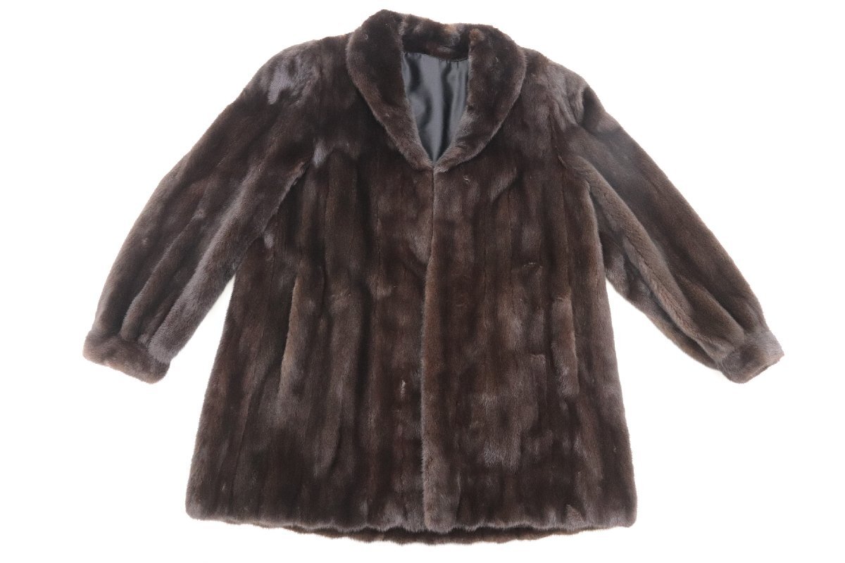 - BLACKGLAMA ブラックグラマ 毛皮 ファー コート アウター サイズ 13 ミンク ブラウン 裏地 刺繍 服 レディース 3872-NA