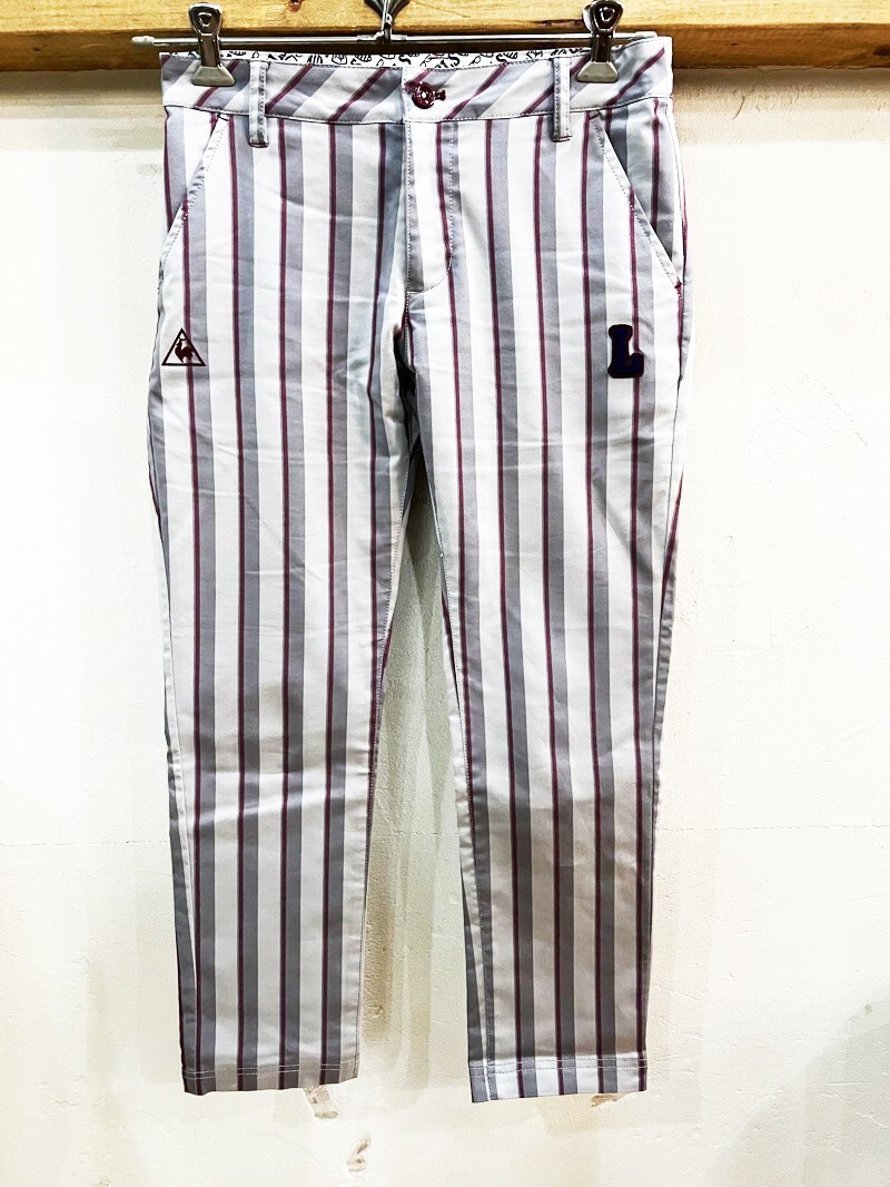 - Y62★le coqaportif/ルコック ワッペン&刺繍デザインストライプロングパンツ グレー系 レディース ゴルフウェア サイズ9 USED ★