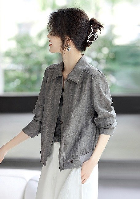 - トップス シャツ ブラウス 長袖 羽織 シンプル カジュアル レディース XL グレー