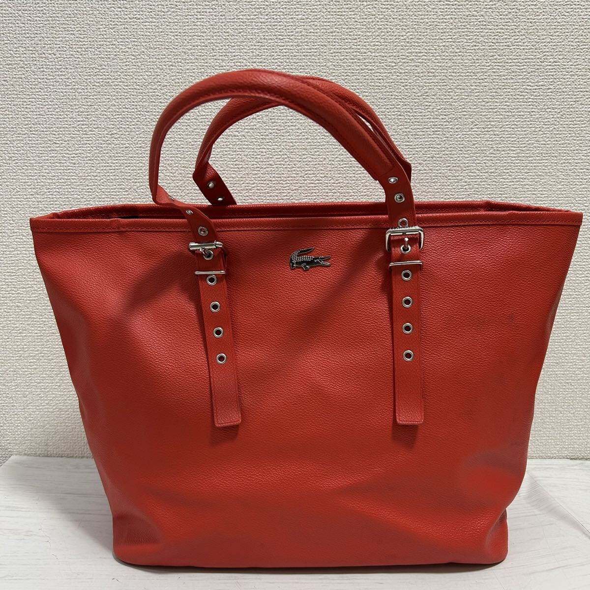 > LACOSTE ラコステ メンズ レディース ビジネスバッグ トートバッグ PVC レザー 赤色 レッド ロゴ ワンポイント A4収納可能 大容量 ブランド