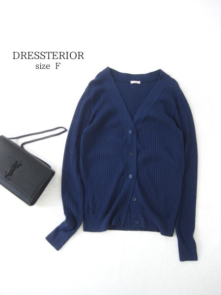 > ☆ドレステリア☆カーディガン☆長袖☆NAVY☆F☆レーヨン混☆Vネック☆コットン混☆リブニット☆DRESSTERIOR