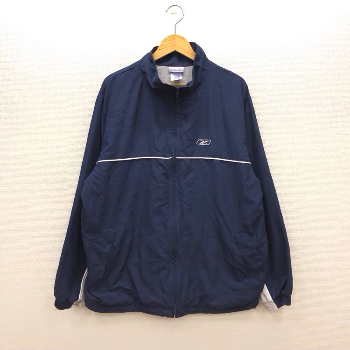 > 【GK030】Reebok Lサイズ(USA) ウィンドブレーカー ネイビー 裏地付き 袖口ゴム ブランド古着 リーボック スポーツウェア 送料無料