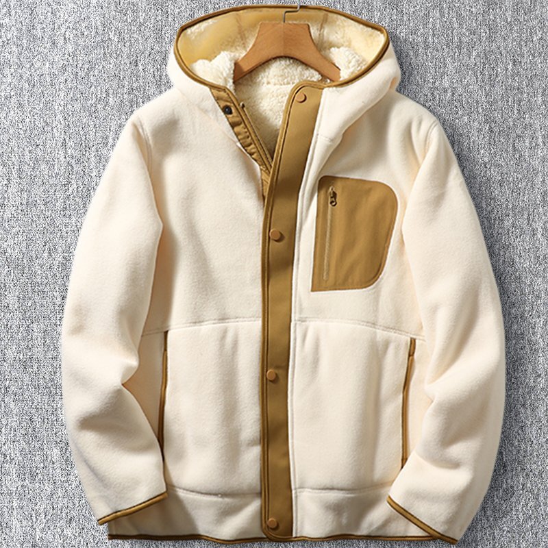 - 新品 フェイクボア ジャケット スタンドカラー 配色 バイカラー 秋冬 防寒 厚手 メンズ 保温 ボアフリースジャケット ベージュ T8167-L
