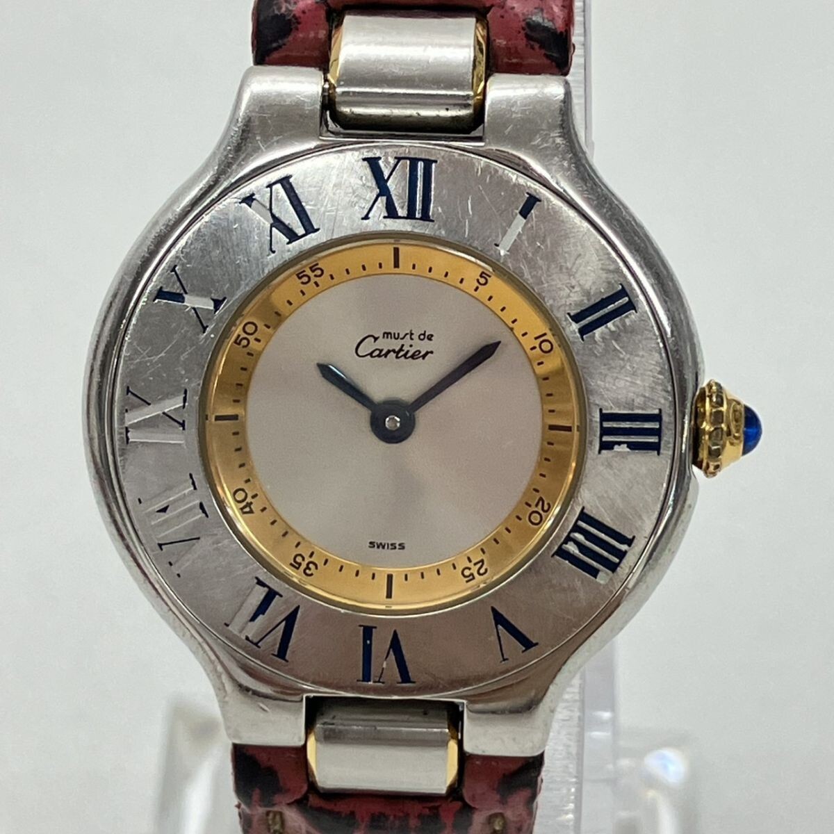 - W094-H32-1060 【電池交換済み/稼働】 Cartier カルティエ レディース腕時計 ヴァンテアンマスト21 1340 QUARTZ ラウンド ケース付き KA