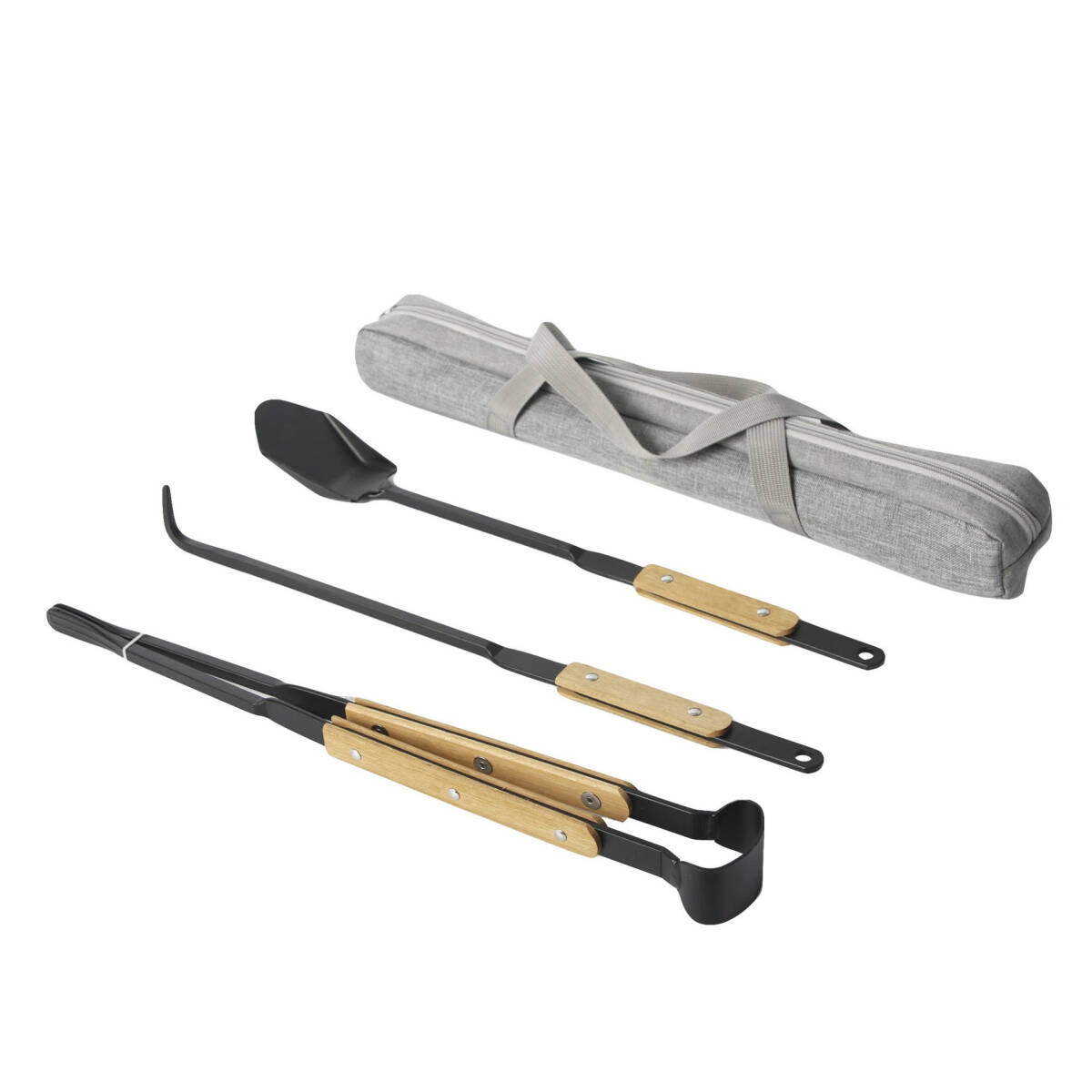 - キャンプ用 硬派で無骨 焚き火ツールセット 火ばさみ 火かき棒 ショベル バーベキュー アウトド ア 野外登山 収納付き