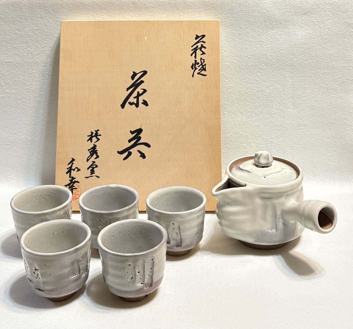 - 萩焼 椿秀窯 大賀和幸 茶器 煎茶器揃 急須 湯呑 木箱