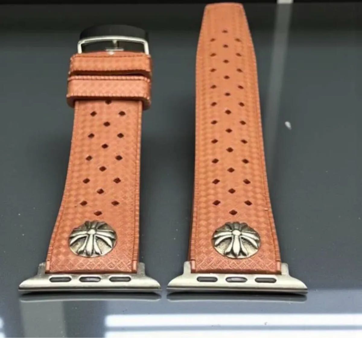 - ベアブラウン AppleWatch用フッ素ラバー バンド コンチョ アップルウォッチ用 カスタム ベルト 38 40 41 42 44 45 46 49 SE Ultra