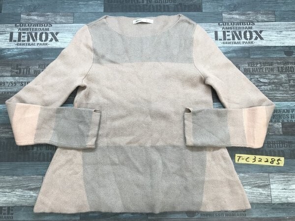 - VAN-DOS レディース 配色切替 Aライン ニットソー S グレーピンク