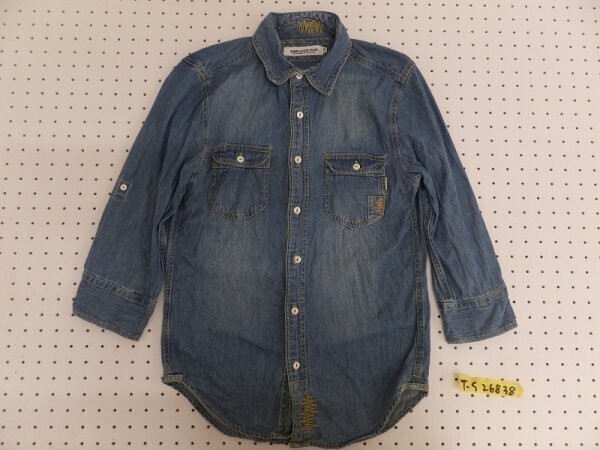 - Simplicite Plus シンプリシテプリュス メンズ 七分袖 ダブルポケット デニムシャツ 38 紺