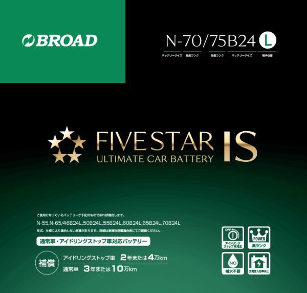 > N-70/70B24L FIVESTAR IS ファイブスター IS アイドリングストップ車対応ノーマル車にも使用可能 送料無料(沖縄・離島・北海道は除く)