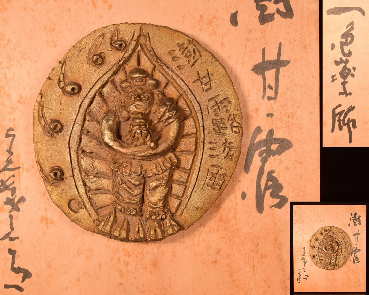 Z451 【泉美】清水公照 一色薬師「樹甘露法雨」ブロンズ掛仏 仏像 置物 オブジェ拍卖