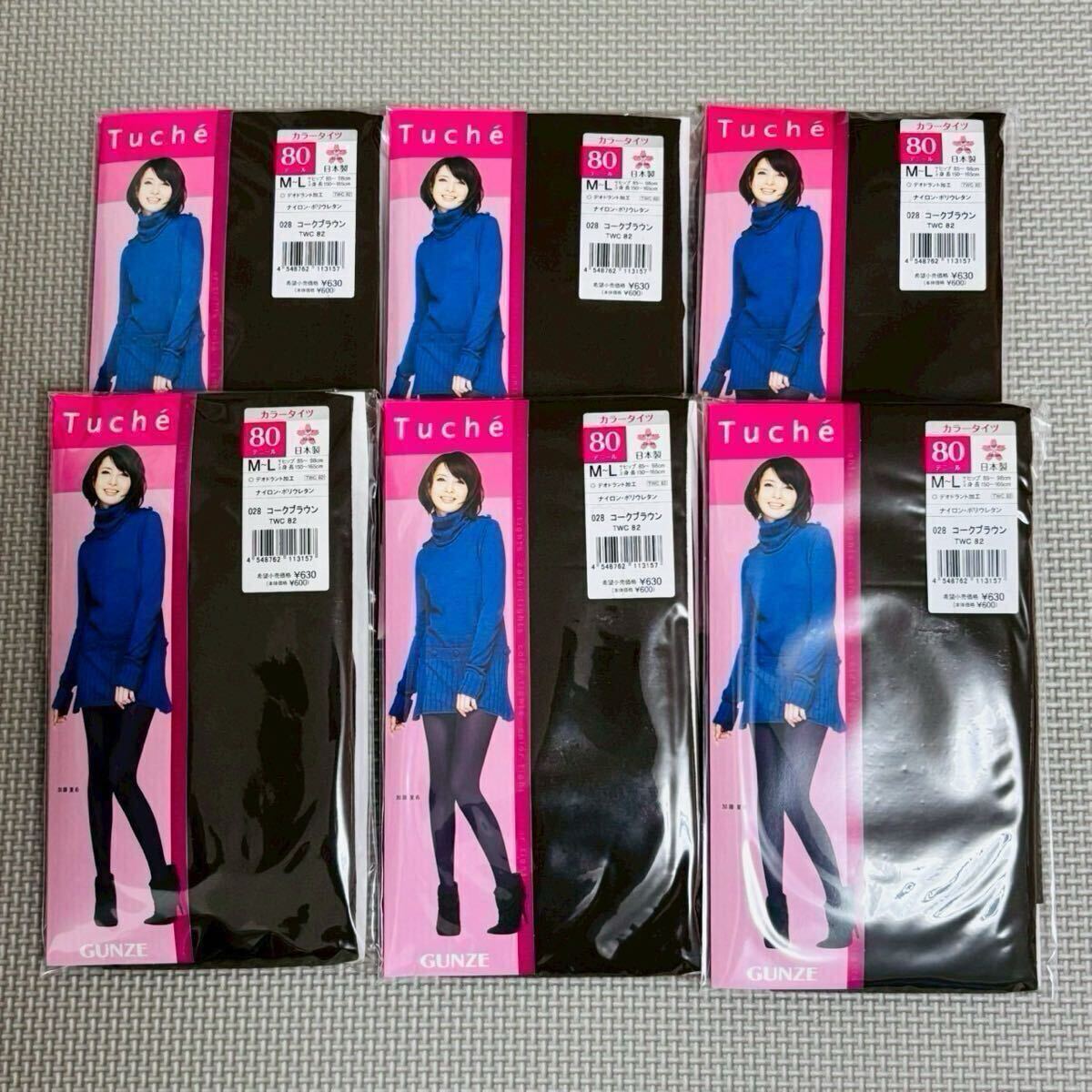 - SALE 新品 M-L 6足セット 定価3,960円 日本製 グンゼ Tuche 80デニール コークブラウン ゾッキカラータイツ