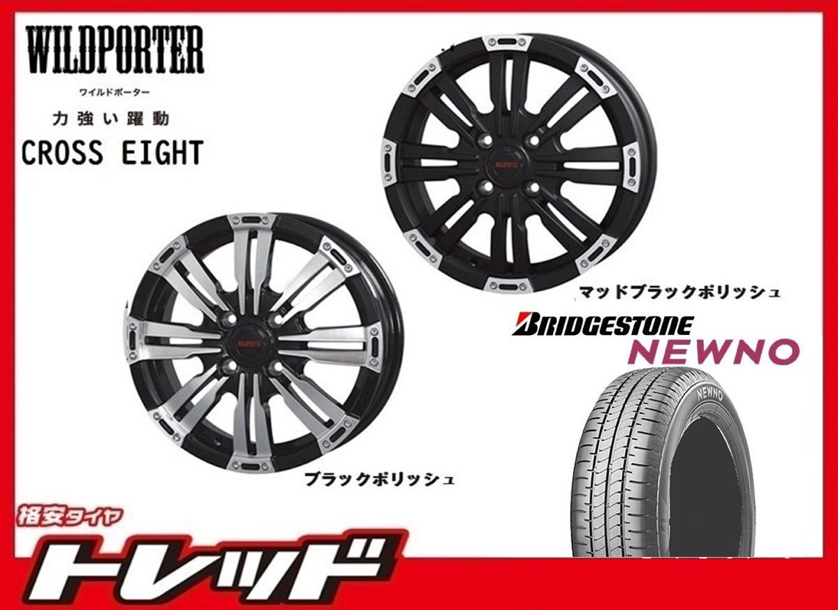 > 数量限定 2023年製)新横浜師岡店 新サマータイヤアルミ4本set クロスエイト 14インチ4.5J4穴100+45 ブリヂストン ニューノ 165/65R14