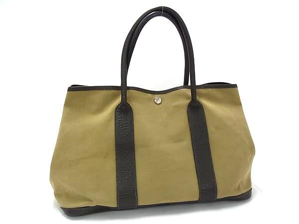 - 1円 ■美品■ HERMES エルメス ガーデンパーティPM トワルオフィシエ キャンバス×レザー シルバー金具 ハンドバッグ T刻印 2015年 BQ2693