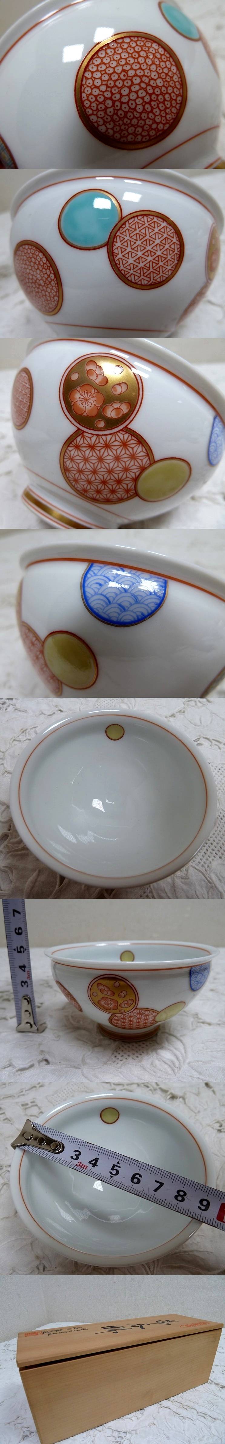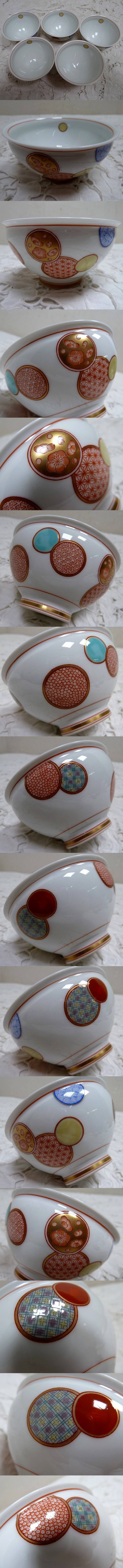 - (☆BM)深川製磁 赤絵丸紋 湯呑碗 5客 煎茶道具 有田焼 茶器 茶道具 色絵 仙茶 和食器 日本 宮内庁御用達 深川製 謹製
