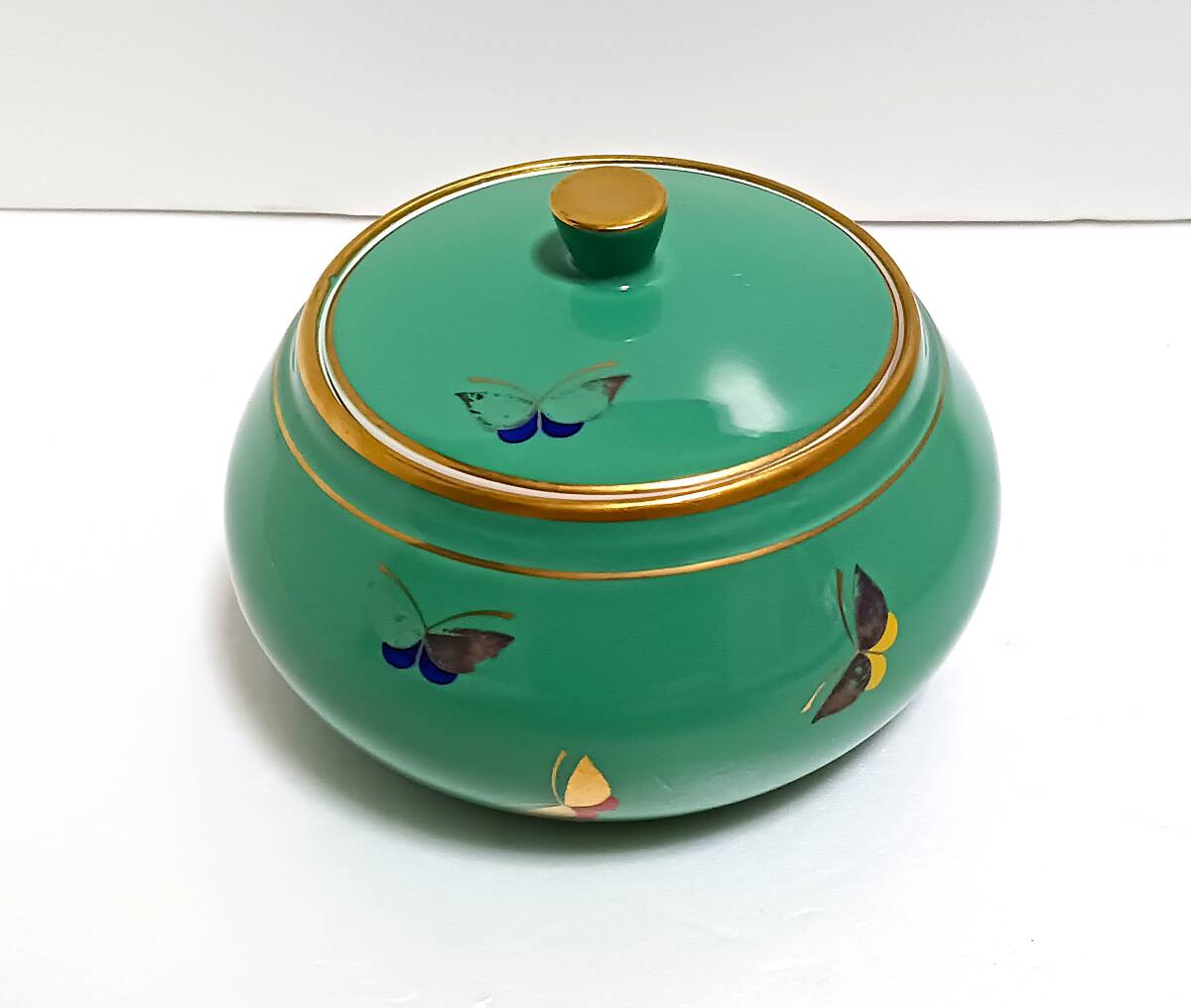 - ◆◇ R945) 香蘭社 蝶柄 蝶々紋 蓋物 キャンディーポット 菓子器 小物入れ 金彩 陶器 有田焼 ◇◆