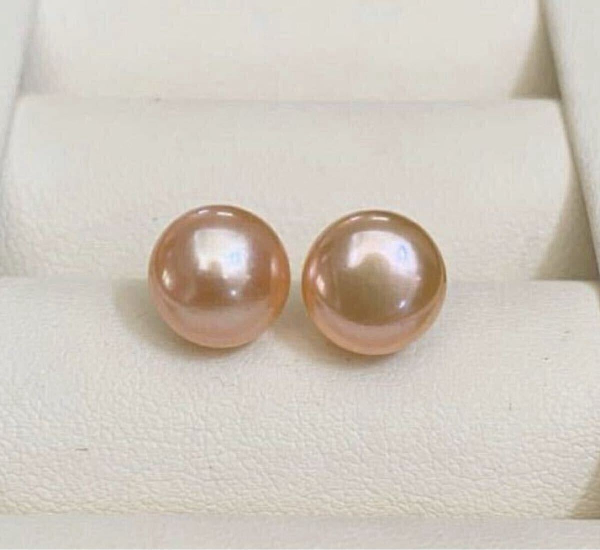 - 発色抜群 天然真珠 パールピアス ピンク アレルギー対応 9.5-9mm a23