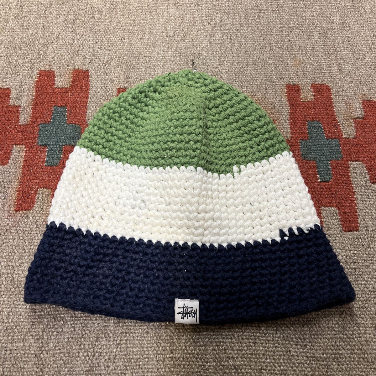 > 90s 90年代 old STUSSY オールド ステューシー コットン ビーニー ニット帽 帽子 ネイビー×ホワイト×グリーン