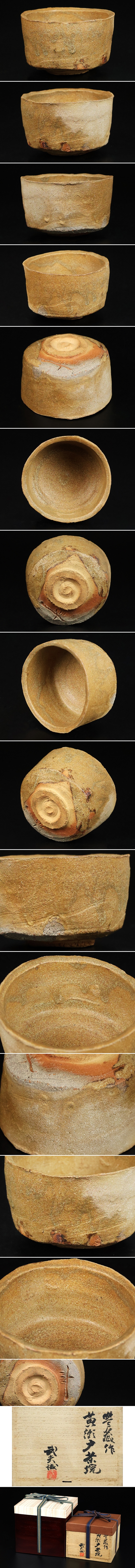 - 【 荒川豊蔵 】最上位作 黄瀬戸茶碗 名碗! 人間国宝 荒川武夫識箱 保証 17209