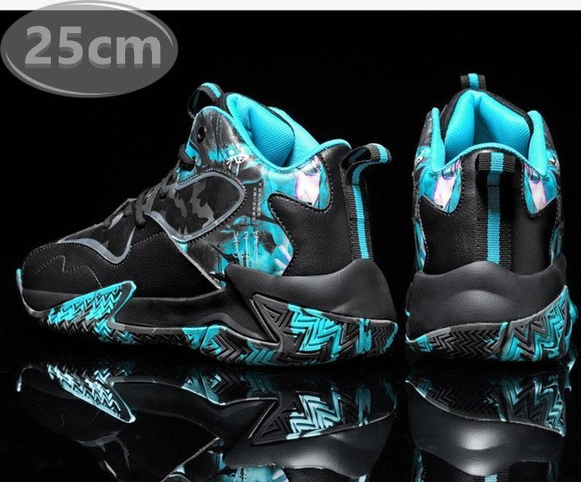- メンズ スニーカー ブルー 25.0cm 靴 シューズ 防滑 バスケットシューズ 通勤 通学 旅行 【235】