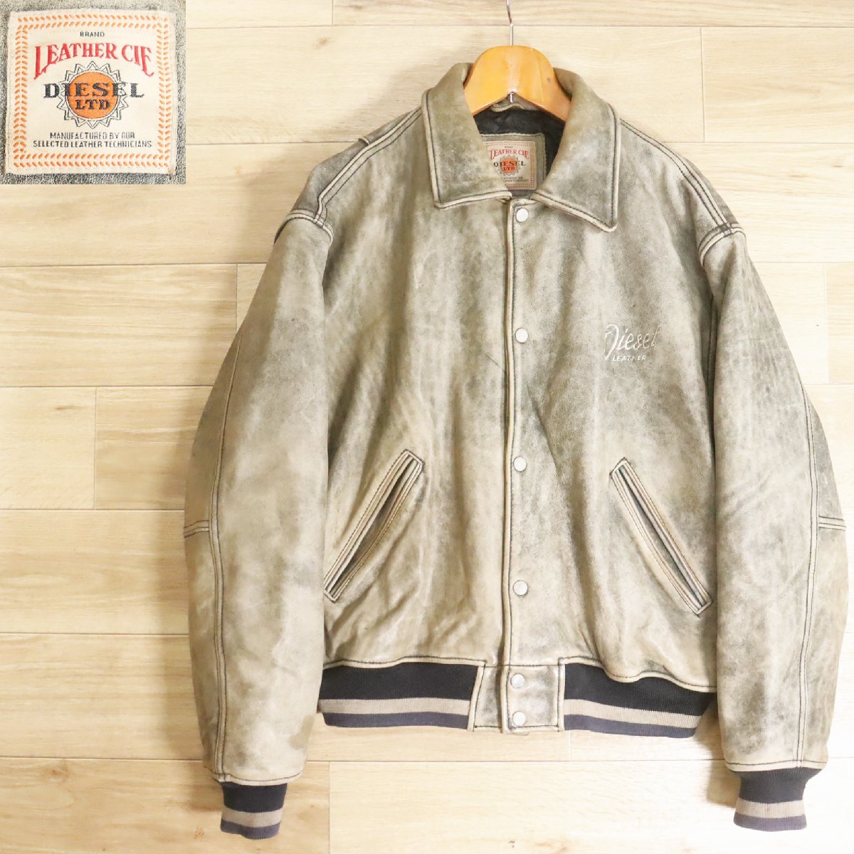 > E7S/Y5.9-5 Diesel ディーゼル レザースタジャン 本革 バーシティジャケット ボンバージャケット メンズ M ヴィンテージ