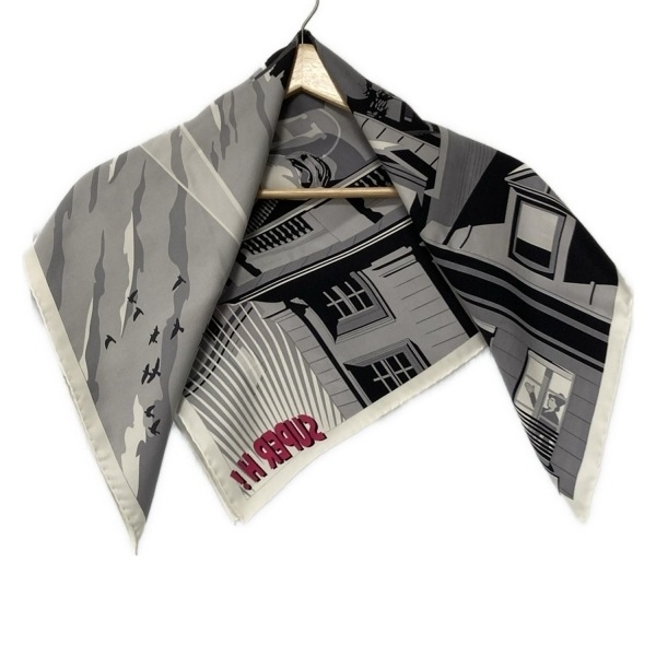 - エルメス HERMES カレ70 グレー×白×マルチ MINUIT AU FAUBOURG 新品同様 スカーフ