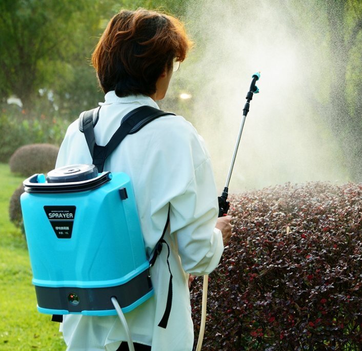 - 電動噴霧器 10L 充電式 背負い式 小型 連続自動噴霧 軽量 圧力調整 残量表示 伸縮チューブ 低騒音 除草 防除 消毒 掃除 園芸 家庭用