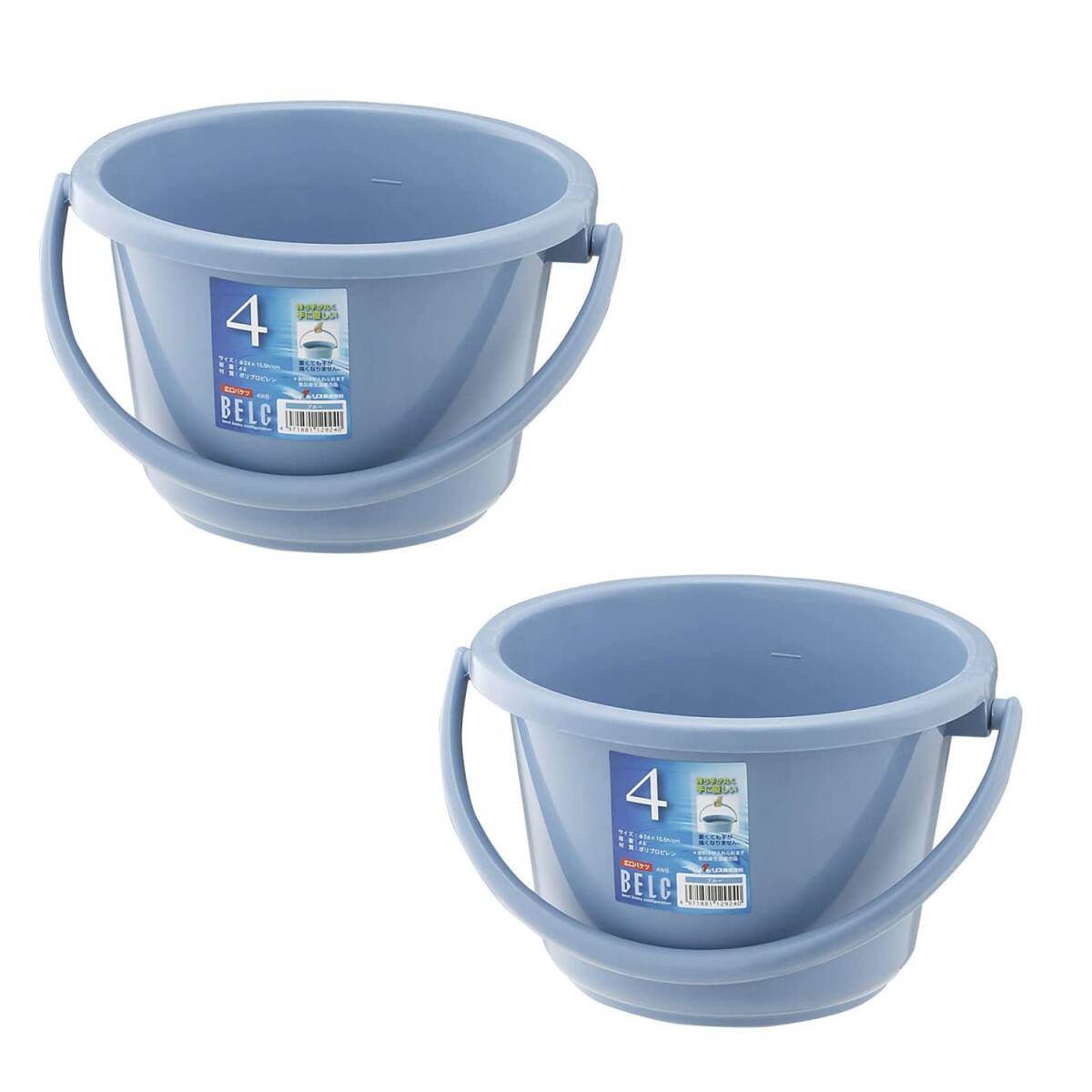 - リス ベルク 4WB 丸型 ワイド バケツ 本体 ブルー 4L 2個セット 日本製 持ち手付き 食品衛生法適合品 持ちやすい シンプル アウトド