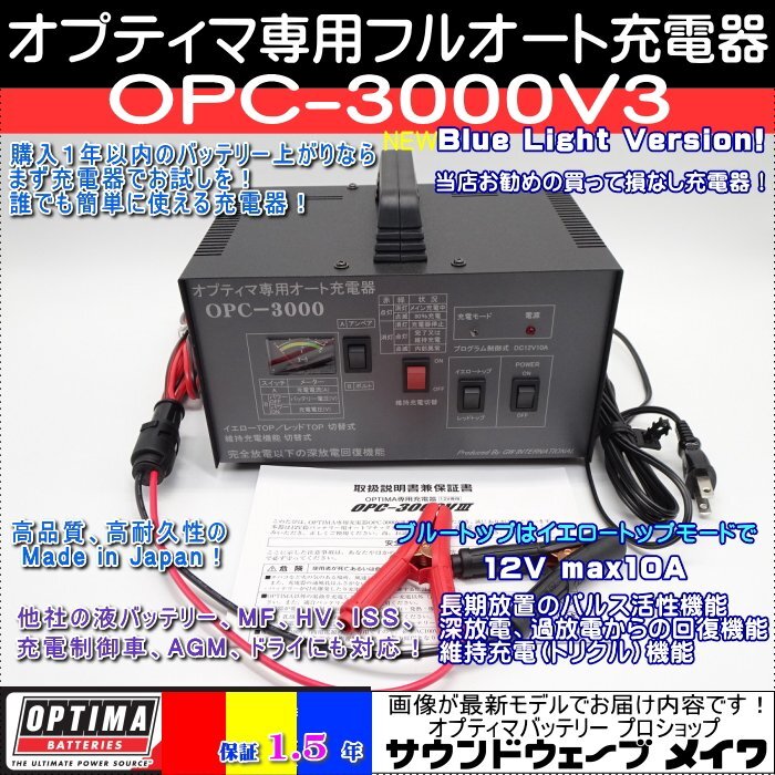 ●新品●オプティマ 専用 フルオート 充電器 新OPC-3000V3 新品【OPTIMAバッテリー専門店 安心のGWIブランド 正規品1.5年保証】
