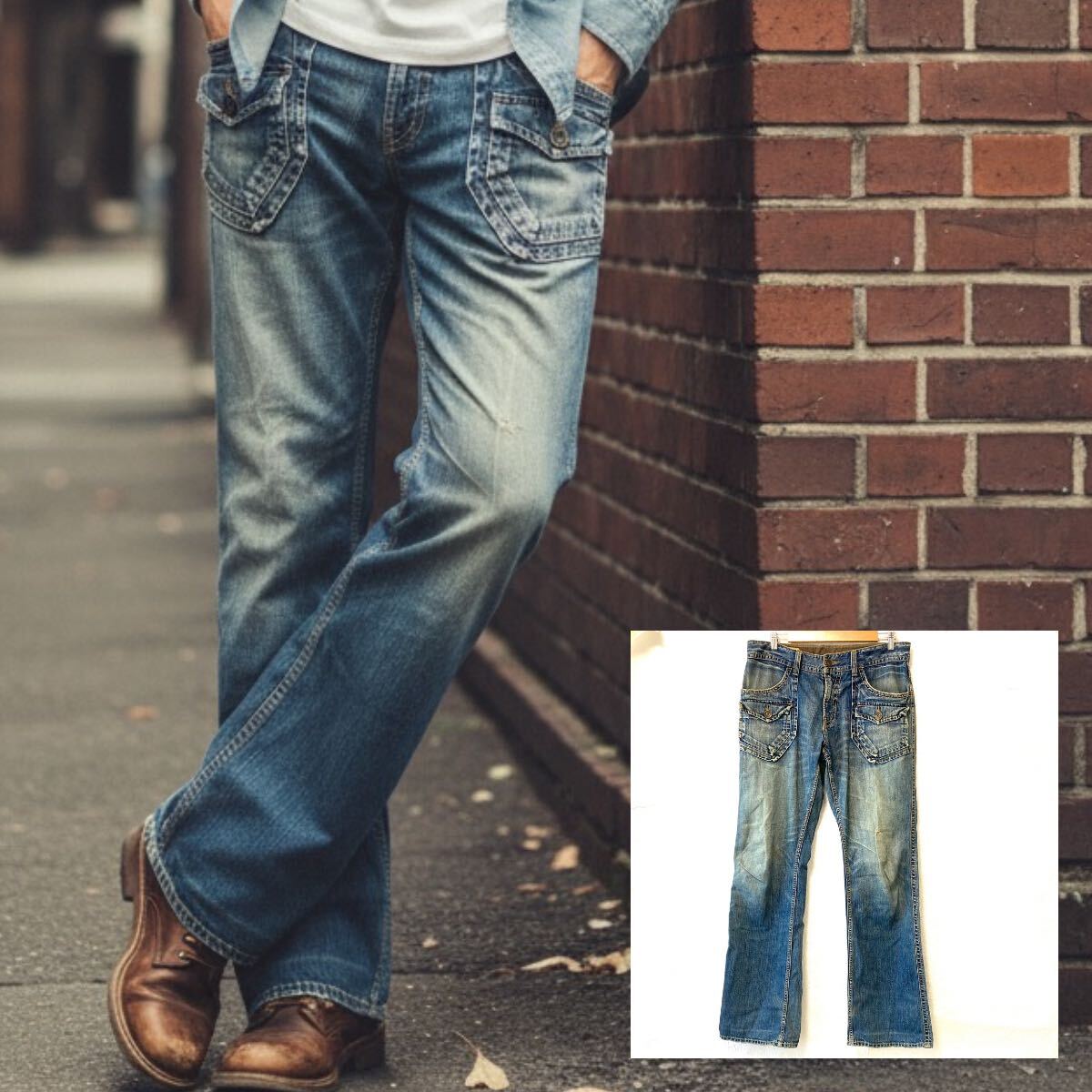 - 程よいウォッシュ加工でお洒落!【RUSH HOUR】ラッシュアワー デニム パンツ ブーツカット ジーンズ インディゴブルー メンズ W34/Y37536UU
