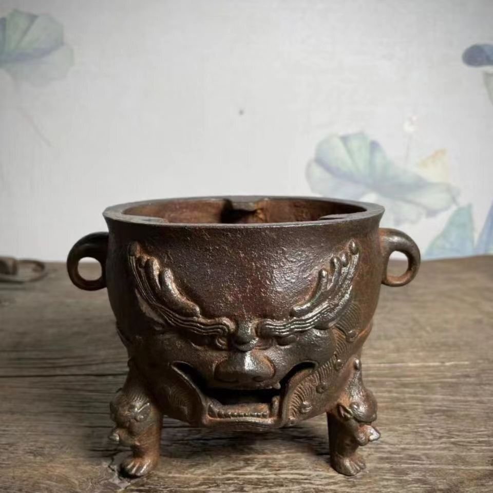 - 旧鉄器/獣面ストーブ/炭火盆/鉄香炉/レトロ/実用コレクション/香薫炉★鉄製★鉄器★装飾品