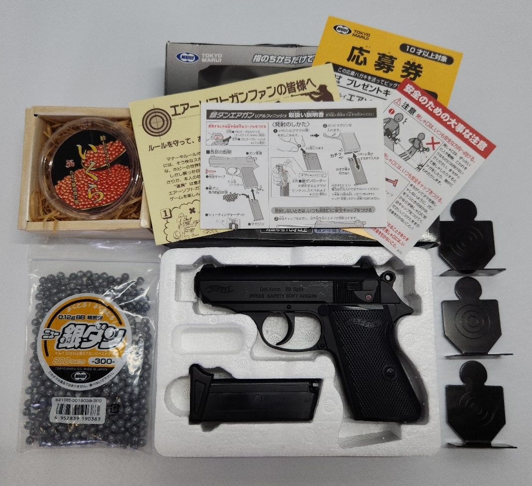 - △TOKYO MARUI(東京マルイ) POLICE PISTOL SS ワルサーPPK ニュー銀ダン(0.12BB弾)袋&0.12いくらBB弾 メタルマンターゲット3つ セット