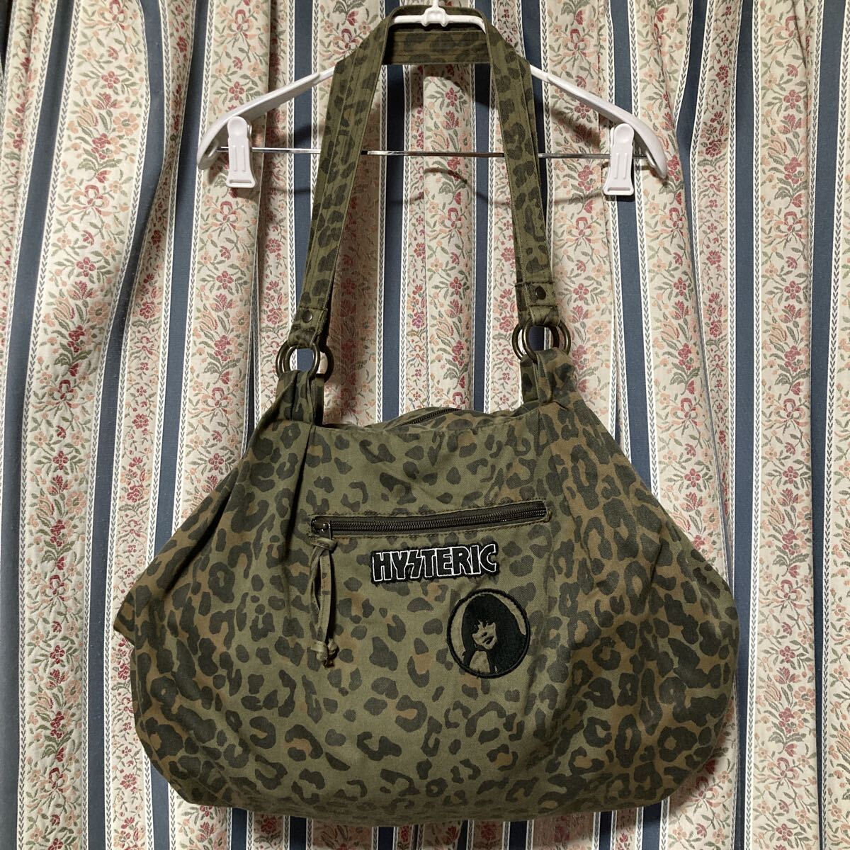 > ヒステリックグラマー レオパード総柄 ロゴ ガールワッペン ボストンバッグ ビッグトート ショルダー 肩掛け ミリタリー コットン カモフラ